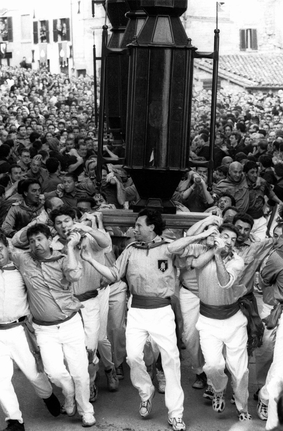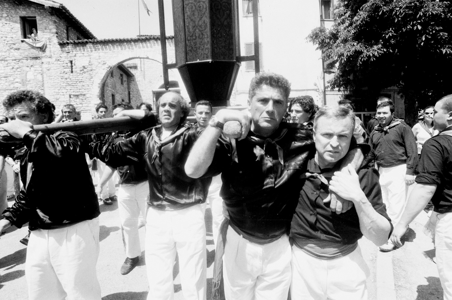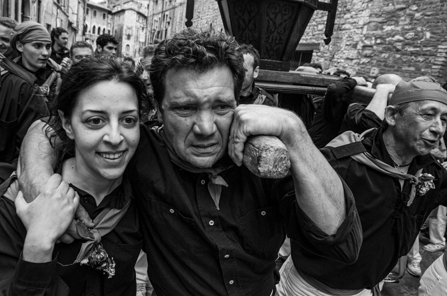 I have worked for several years photographing this event, running alongside the ceraioli and following them through every stage — from the preparations in the crowded piazzas to the chaotic, emotional ascent up Mount Ingino toward the Basilica of Sant’Ubaldo. The experience is as exhausting as it is exhilarating, revealing a tradition that transcends time.