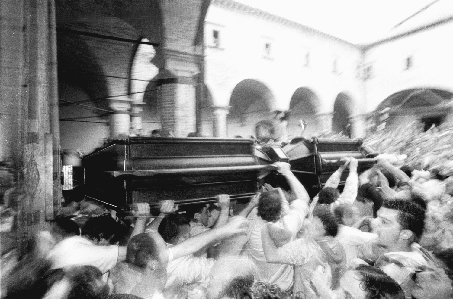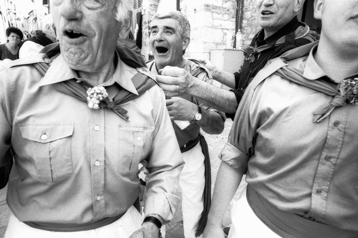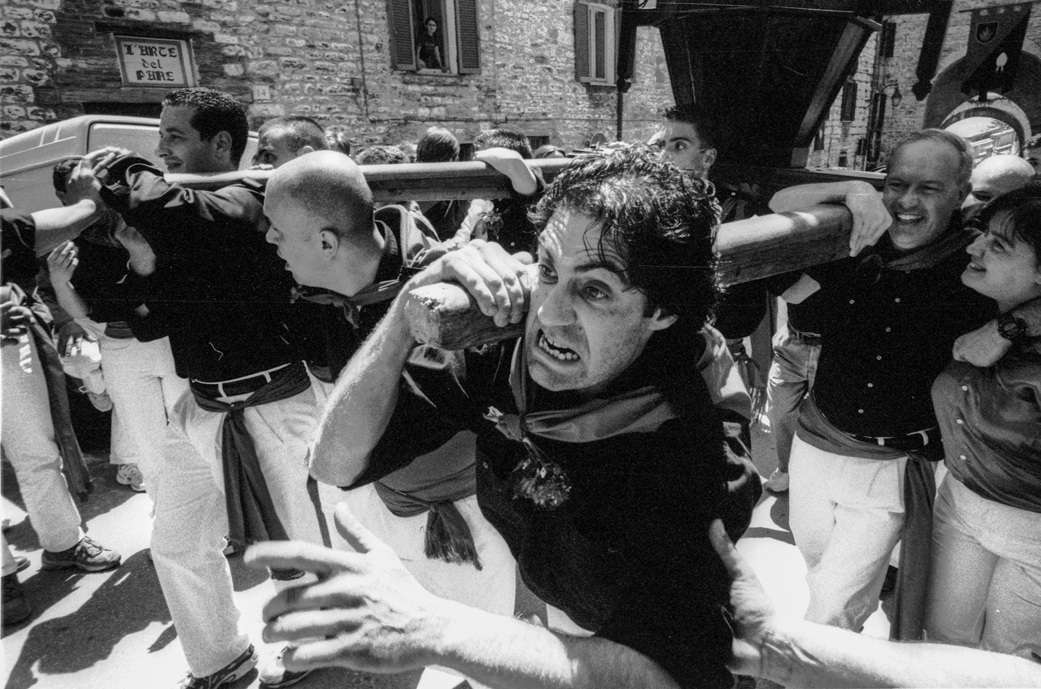I have worked for several years photographing this event, running alongside the ceraioli and following them through every stage — from the preparations in the crowded piazzas to the chaotic, emotional ascent up Mount Ingino toward the Basilica of Sant’Ubaldo. The experience is as exhausting as it is exhilarating, revealing a tradition that transcends time.