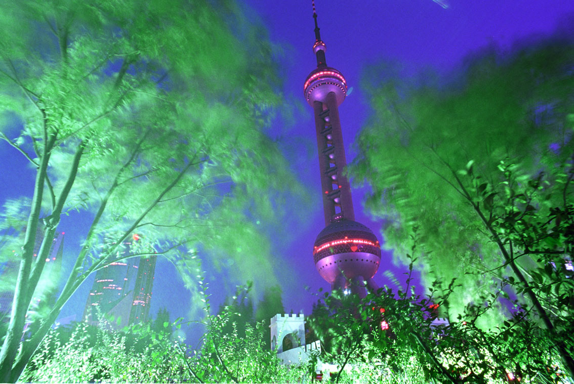 Sitting on the terrace of Shanghai best know restaurants and clubs on the Bund , your eyes take in the city's bladerunner skyline, the outgrowth of a science fiction dream. On the far bank of the Huangpo River a whole new district has burgeoned : New Pudong Area. Begun not even 30 years ago, this supercity has mushroomed out the one-time farming land between the river and the East China Sea.